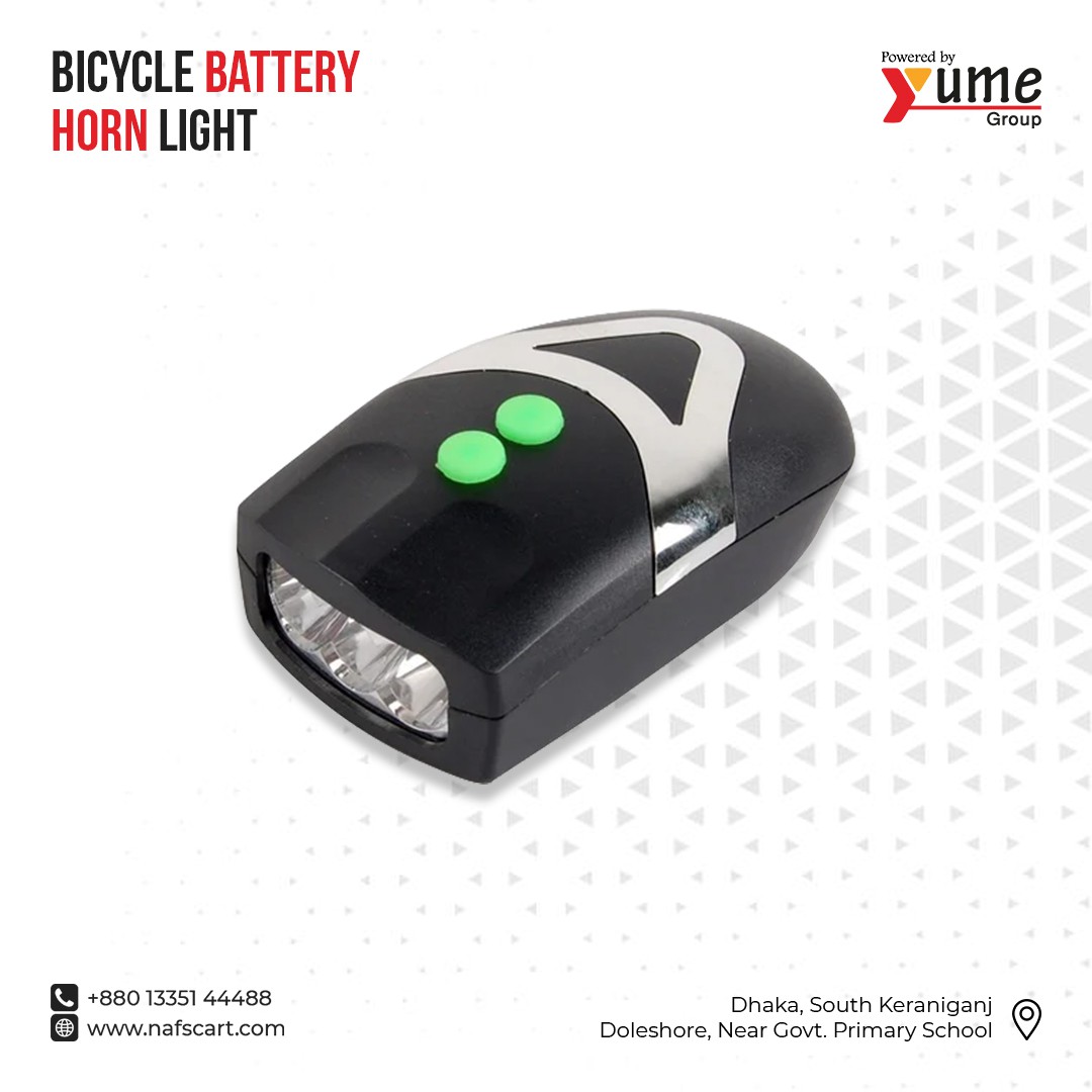 Maximize your safety and utility with our 2-in-1 Bicycle Battery Horn Light. This essential accessory combines a powerful LED front headlight with a high-decibel electronic horn, ensuring you are both seen and heard on the road. The sleek, aerodynamic design features two easy-to-reach green buttons—one for the light and one for the horn—allowing for quick operation while riding.