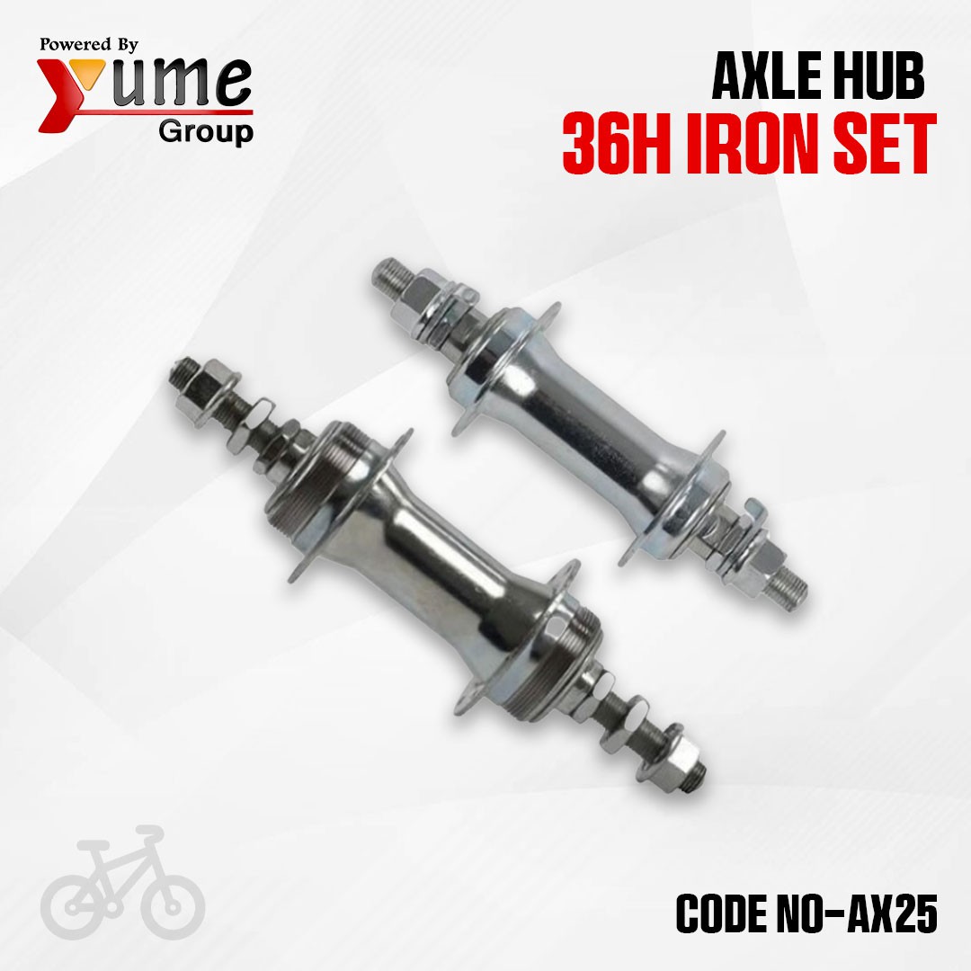 The Axle Hub 36H Iron Set (AX25) is a heavy-duty bicycle hub solution engineered for maximum durability and load-bearing capacity. Unlike lightweight alloy alternatives, this set is constructed from high-grade iron steel, making it exceptionally resistant to the stresses of daily commuting, heavy cargo hauling, and rugged touring. The 36-hole (36H) configuration ensures even spoke tension distribution, which significantly improves wheel strength and resistance to deformation under pressure. Each hub features a smooth-rolling ball bearing system and a threaded rear axle designed for easy installation of multi-speed freewheels. Finished with a protective coating to prevent rust, this iron hub set is a reliable, budget-friendly choice for restoring traditional bicycles or building high-strength wheels