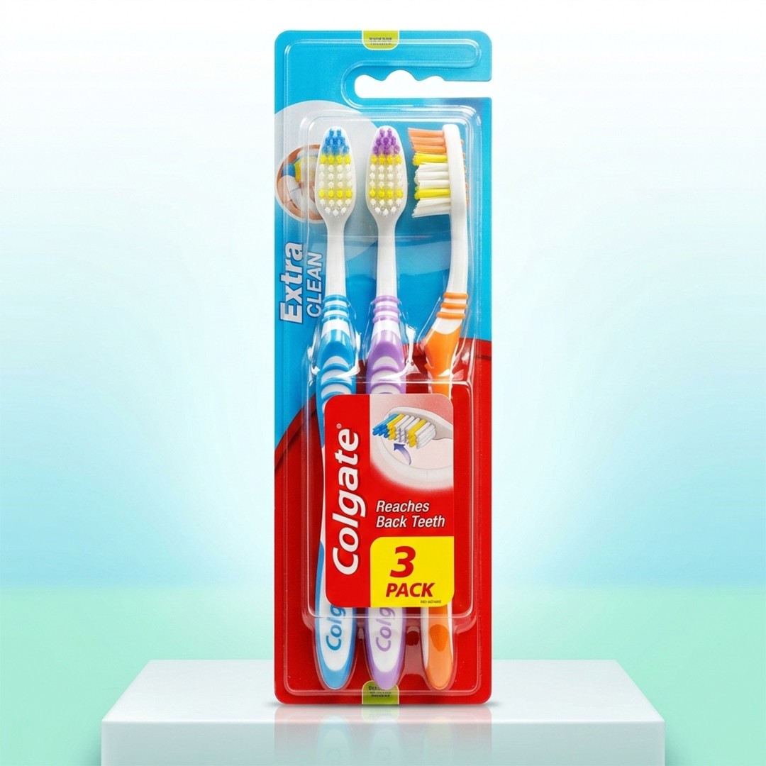 Colgate Extra Clean Toothbrush is designed to provide effective cleaning for a healthy smile. Its specially designed bristles help reach back teeth and clean hard-to-reach areas, removing plaque and food particles efficiently.
