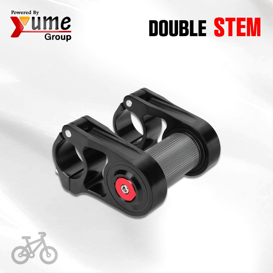The Yume Group Double Stem is a premium upgrade component designed specifically for folding bikes and small-wheeled cycles that require adjustable handlebar positioning. This dual-clamping system provides enhanced stability and allows riders to extend or elevate their handlebars for a more ergonomic riding posture. Crafted from high-quality CNC-machined aluminum, it offers a lightweight yet rigid structure that ensures precise handling. The sleek black finish with red accent bolts adds a custom, sporty look to your bike while providing reliable performance for urban commuting or long-distance touring.