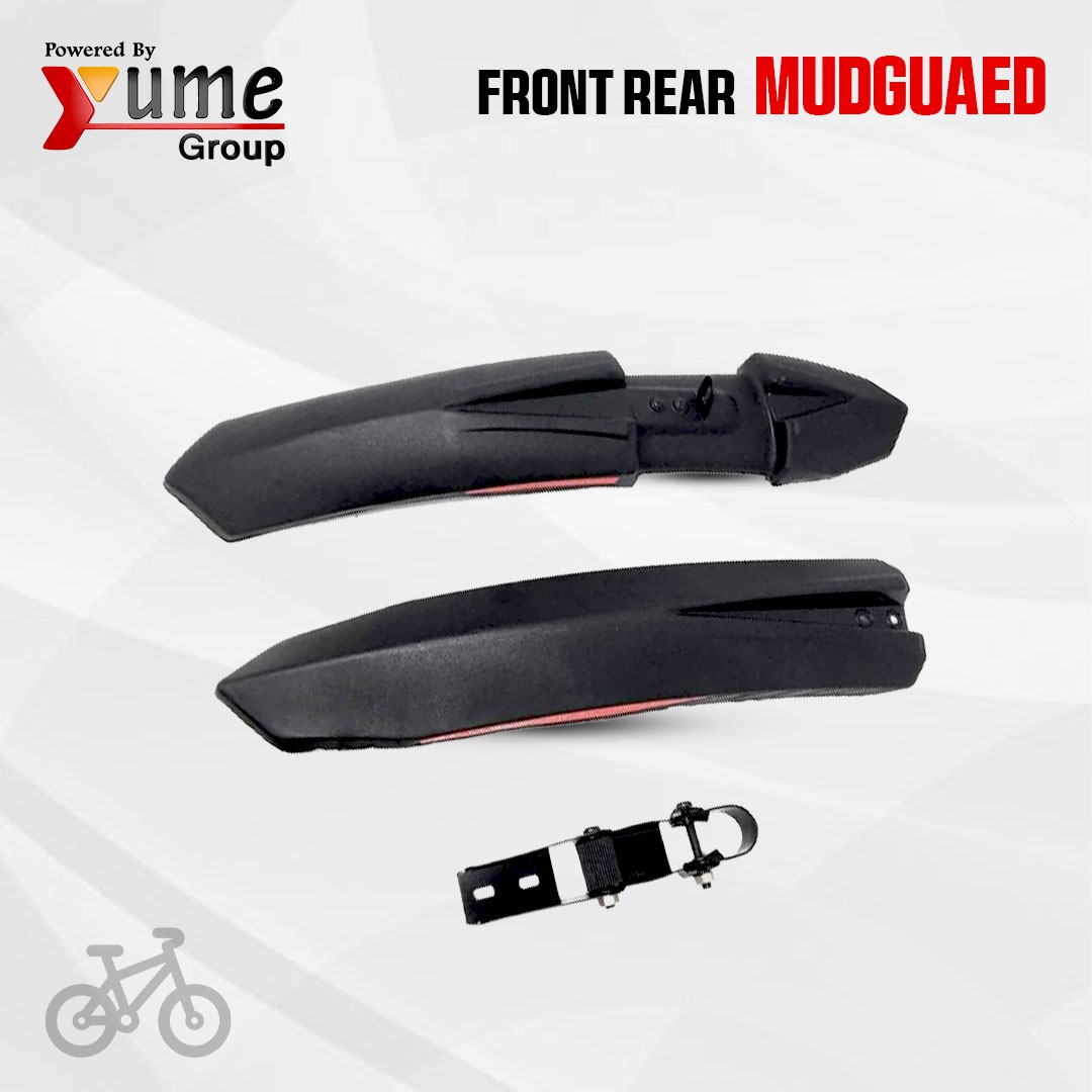 The Yume Group Bicycle Mudguard Set is an essential accessory for any cyclist riding in wet or muddy conditions. This two-piece set includes both a front and a rear fender designed to effectively block water splashes, mud, and road debris from reaching the rider or the bike's drivetrain. Made from high-strength, flexible synthetic plastic, these mudguards are built to be "unbreakable" and can withstand minor impacts or bending without snapping. Their universal design makes them compatible with a wide range of bicycle types, including mountain bikes (MTB), road bikes, and hybrid cycles. The aerodynamic "swallow tail" shape not only provides excellent protection but also adds a sporty look to your bicycle while maintaining a lightweight profile.