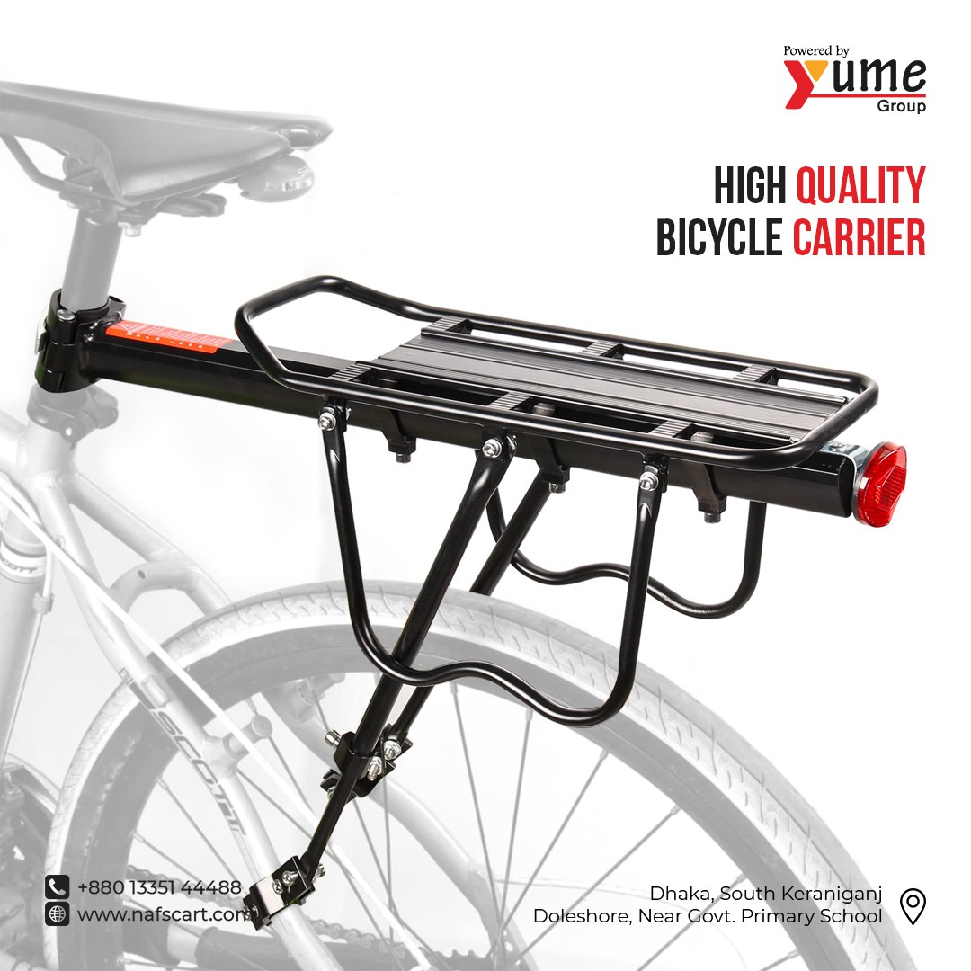 Increase your bike's utility with our High Quality Bicycle Carrier. This heavy-duty rear cargo rack is designed for cyclists who need a reliable way to transport gear, groceries, or touring panniers. Constructed from high-strength, lightweight aluminum alloy, it offers exceptional durability without adding significant weight to your ride.