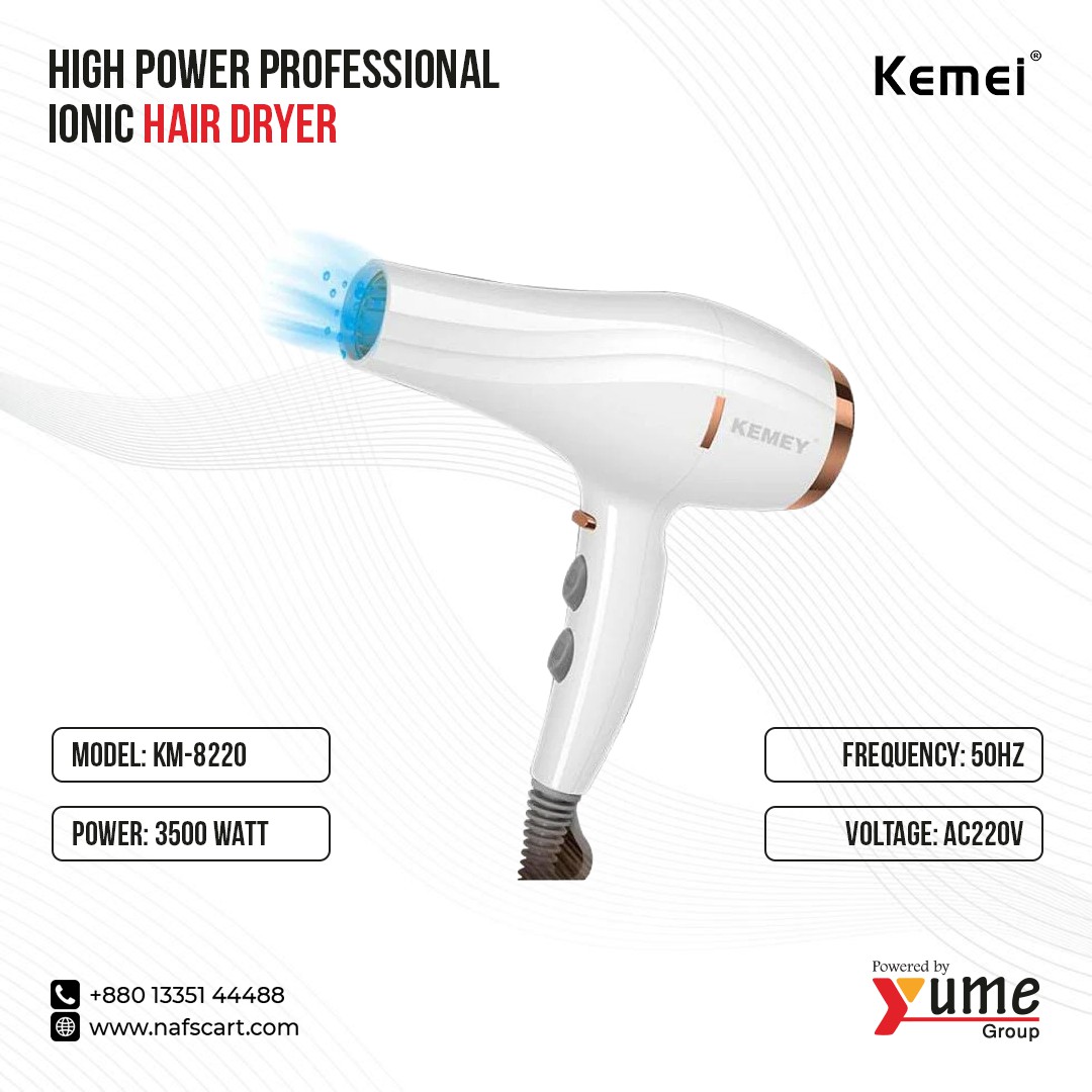Kemei KM-8220 High Power Professional Ionic Hair Dryer – 3500W Maximum Performance