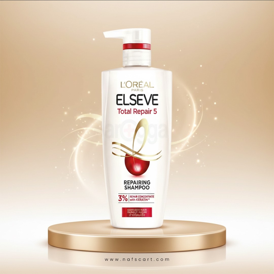L’Oréal Paris Elseve Total Repair 5 Repairing Shampoo is specially formulated to repair damaged hair and restore strength, smoothness, and shine. Enriched with Keratin and Repair Concentrate, this powerful formula targets five common signs of hair damage — dryness, roughness, dullness, weakness, and split ends.