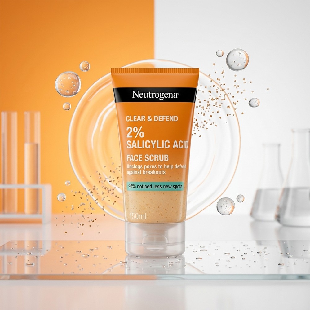 Neutrogena Clear & Defend 2% Salicylic Acid Face Scrub 150ml – Anti-Acne Exfoliating Cleanser (FR)
