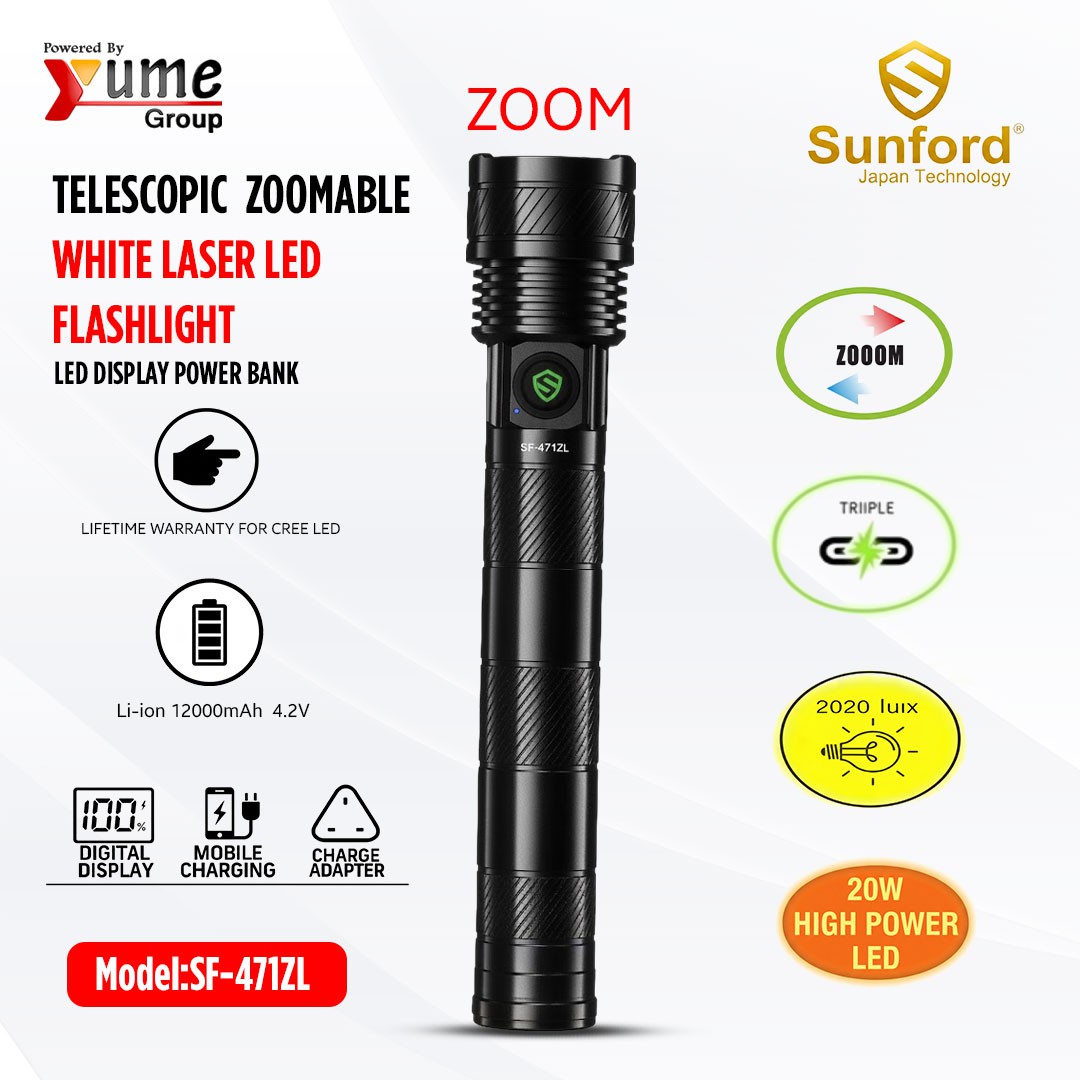 Sunford SF-471ZL Telescopic Zoomable White Laser LED Flashlight