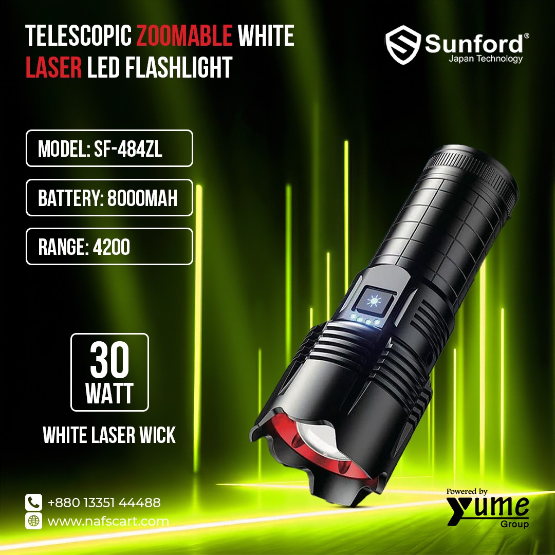 Sunford SF-484ZL 30W Telescopic Zoomable White Laser LED Flashlight – 4200m Range with 8000mAh Battery