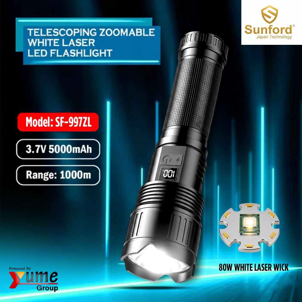 Sunford SF-997ZL Telescopic Zoomable 80W White Laser LED Flashlight