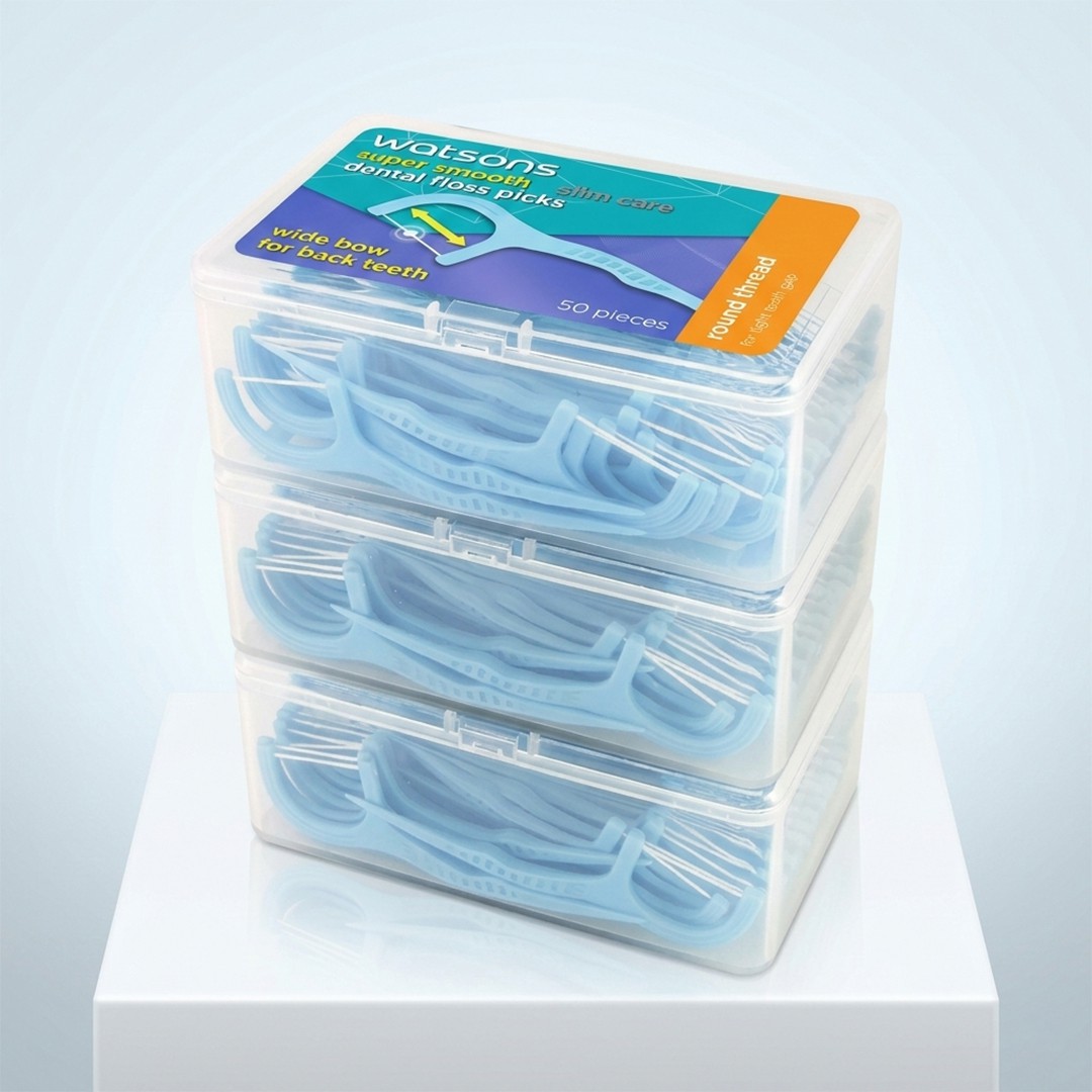 Watsons Dental Floss Picks Wide Bow 50pcs – Super Smooth Slim Floss for Easy Teeth Cleaning & Gum Care