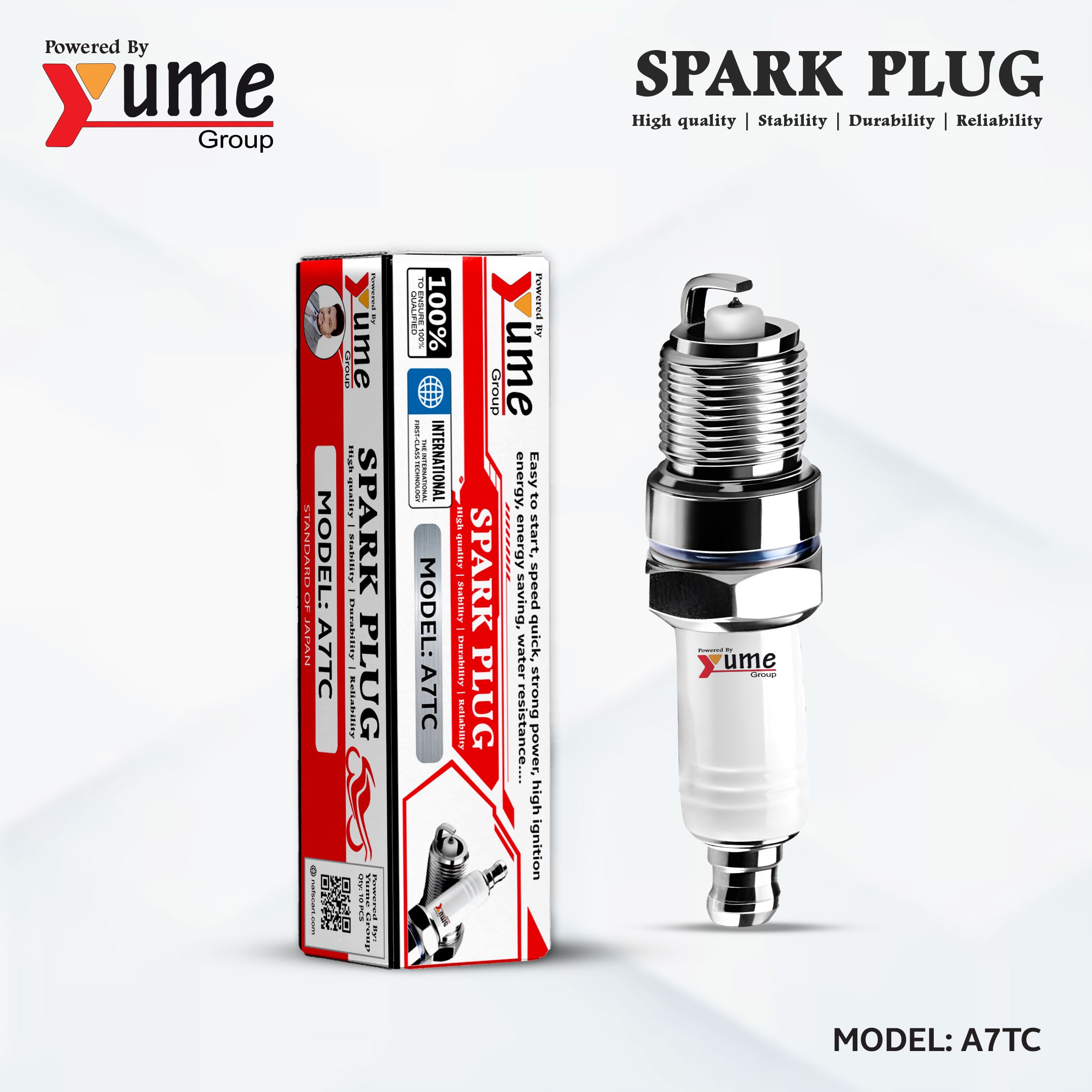 The Yume Group A7TC Spark Plug is engineered for high performance, offering a blend of stability and durability for various engine types. Developed with a "Standard of Japan" philosophy, this spark plug ensures a reliable ignition process even under demanding conditions. It features energy-saving technology and water resistance to maintain efficiency and power output.